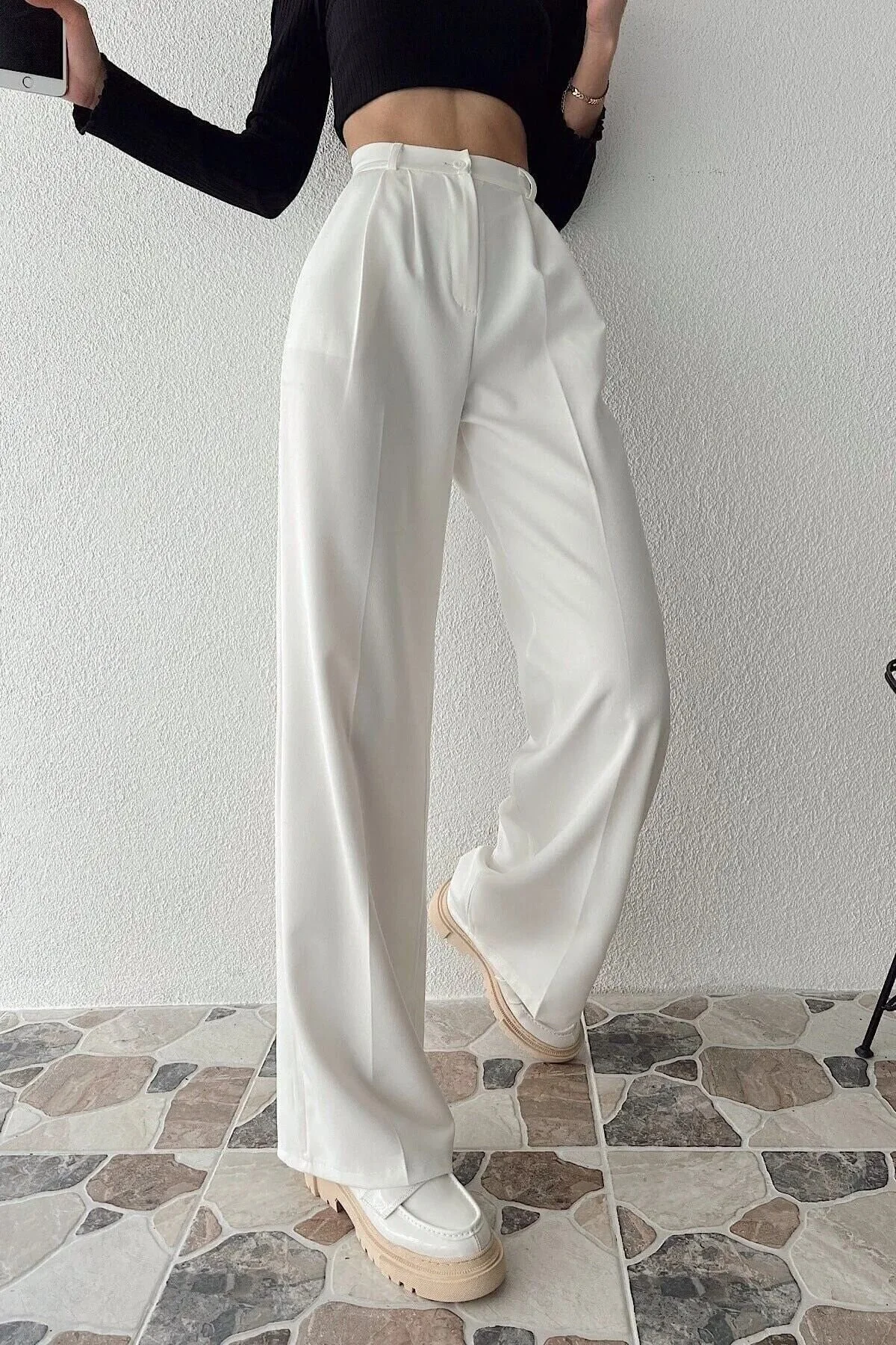 Düz kesimi ve uzun boyu ile her türlü üst giyimle kolayca yapılır kombinlenebilir